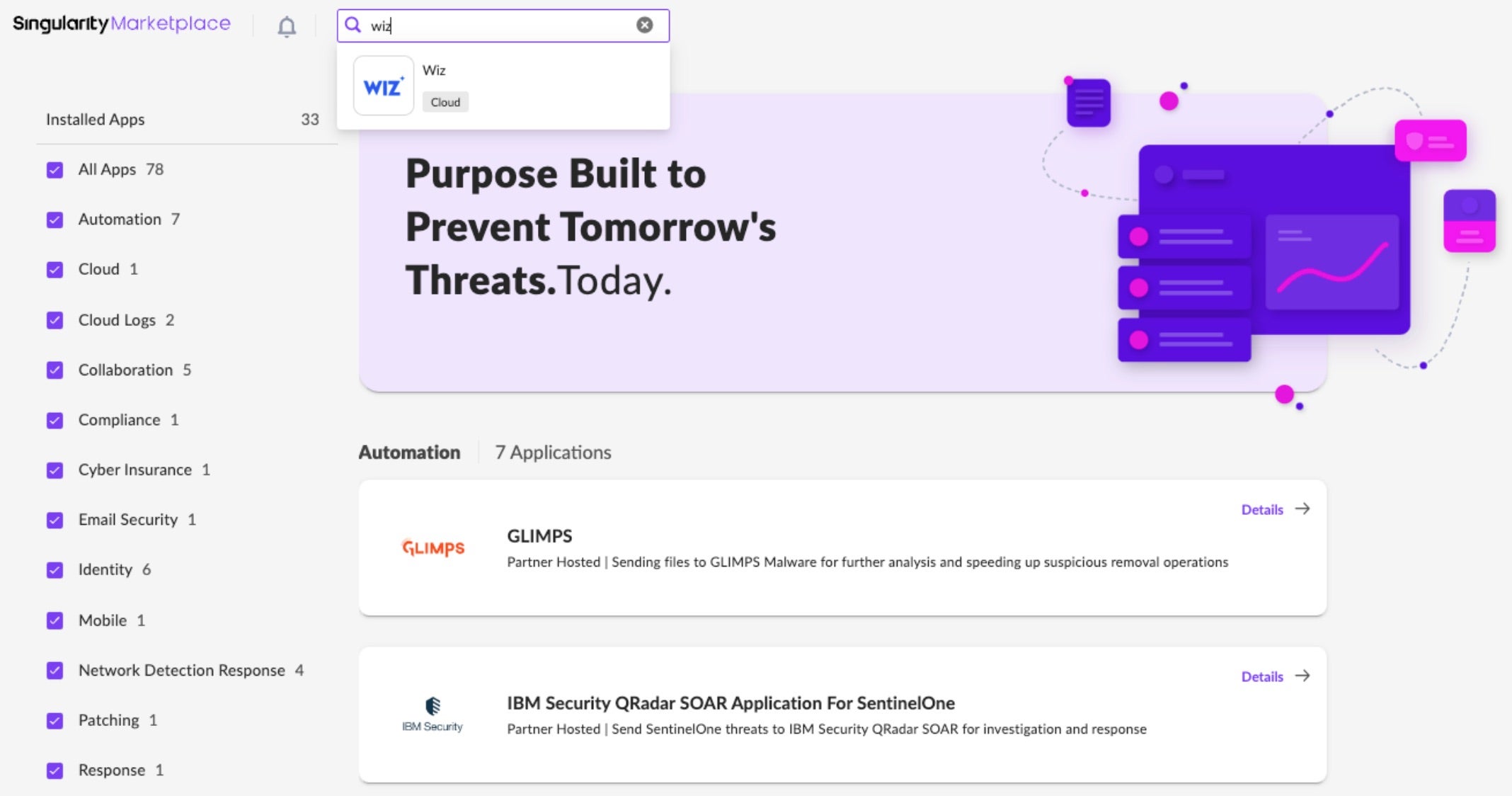 To get started, SentinelOne customers can navigate to the Singularity Marketplace from within the management console and search for Wiz. Select the Wiz app and install (See Figure 1).
